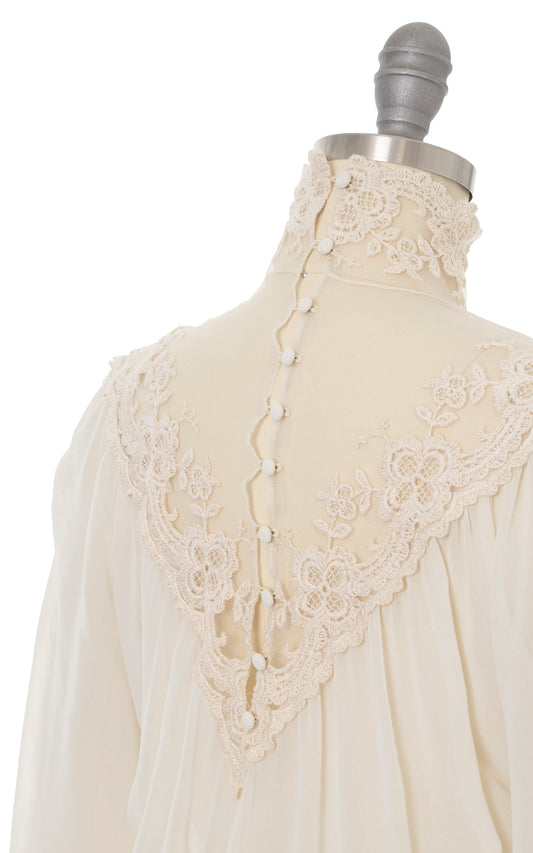 1970s does Victorian Lace Button Back High Neckline Dress | small/medium
