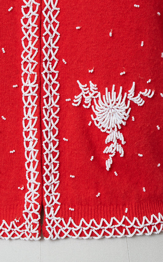 1950s Rhinestone Beaded Knit Top | x-small/small/medium