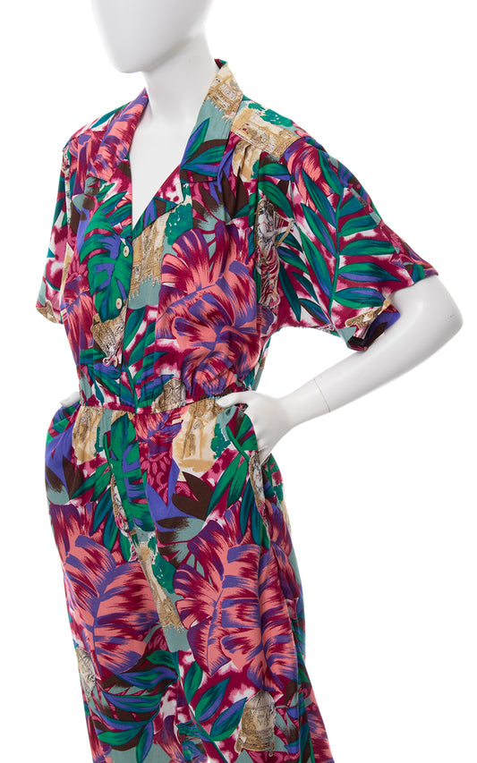 1980s CAROL ANDERSON Palm Leaves Travel Novelty Print Jumpsuit | medium/large