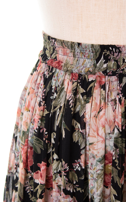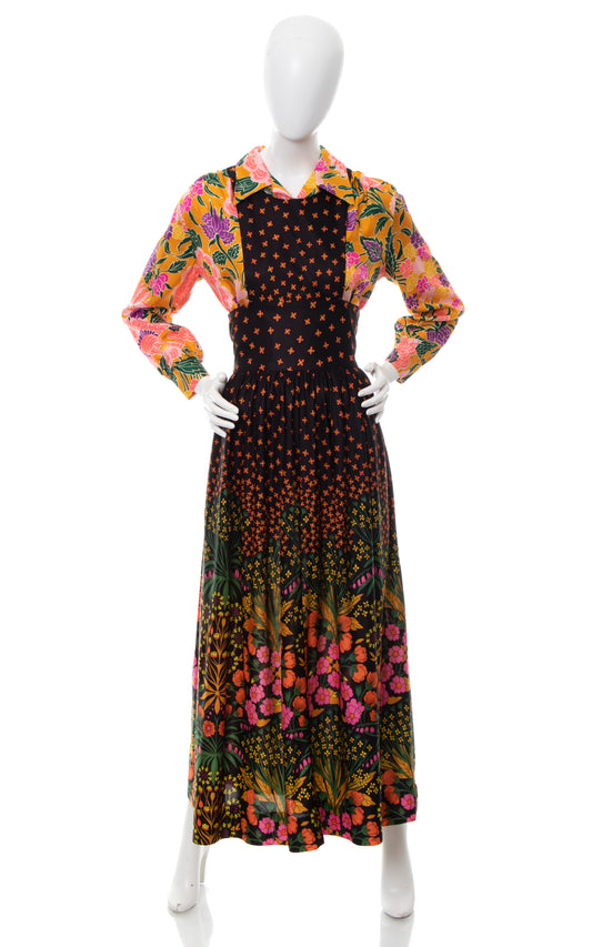 1970s Floral Border Print Bib Maxi Dress | small/medium