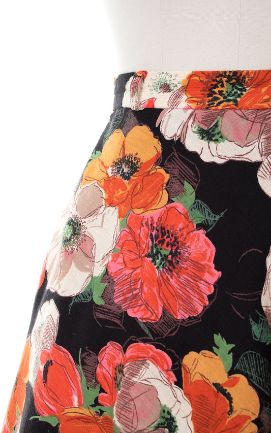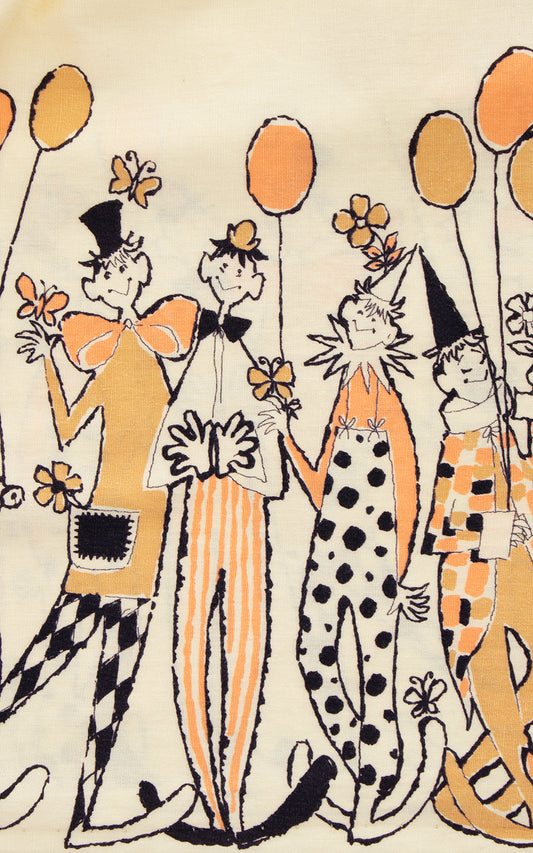 1950s 1960s Clowns Novelty Border Print Skirt | medium