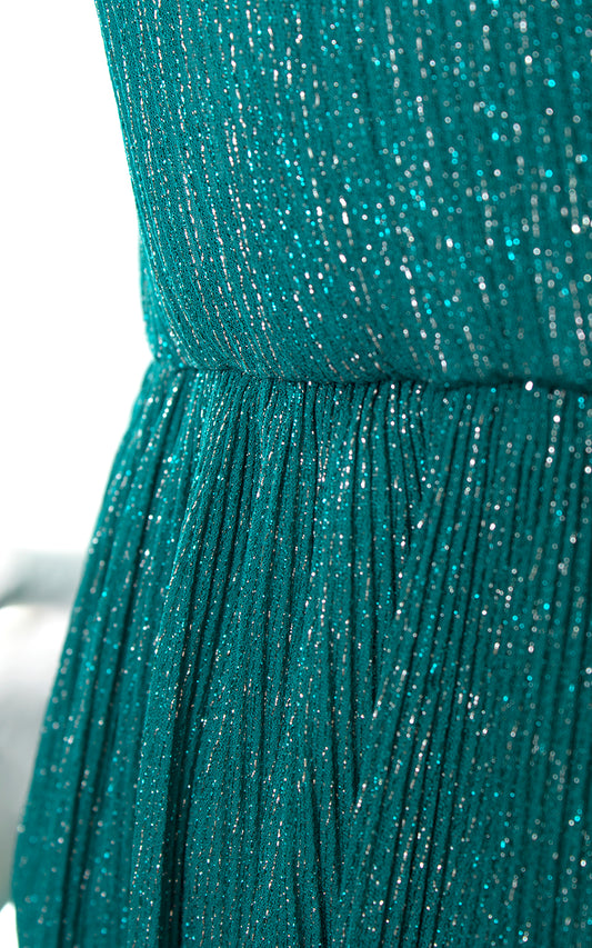 1970s Metallic Green Plissé Dress | x-small/small/medium