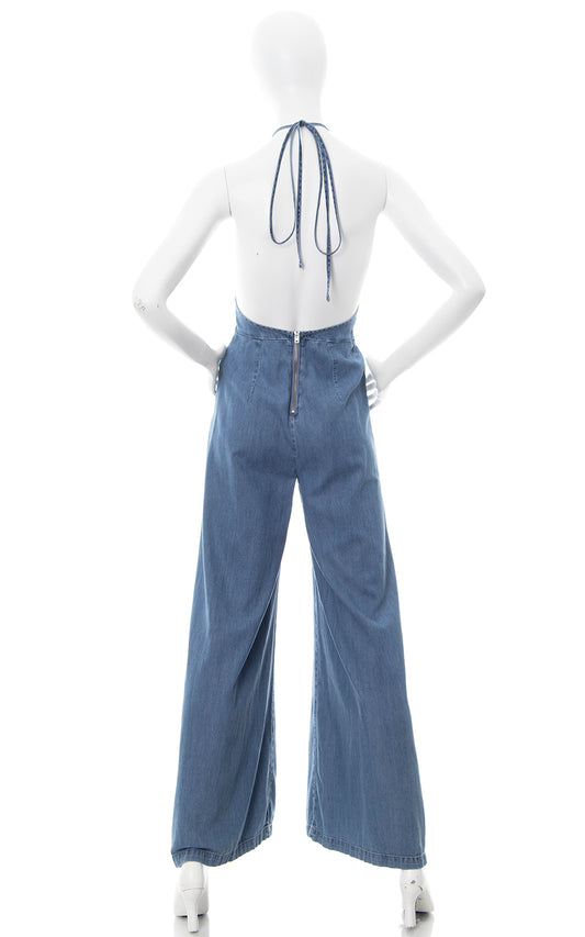 Modern FREE PEOPLE Denim Halter Wide Leg Jumpsuit | x-small/small