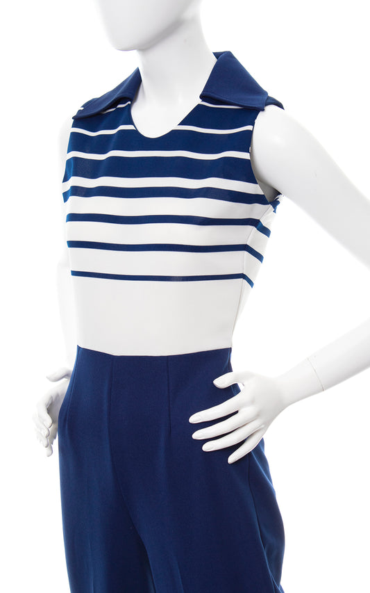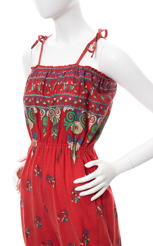 1970s Greek Birds Border Print Cotton Jumpsuit | small