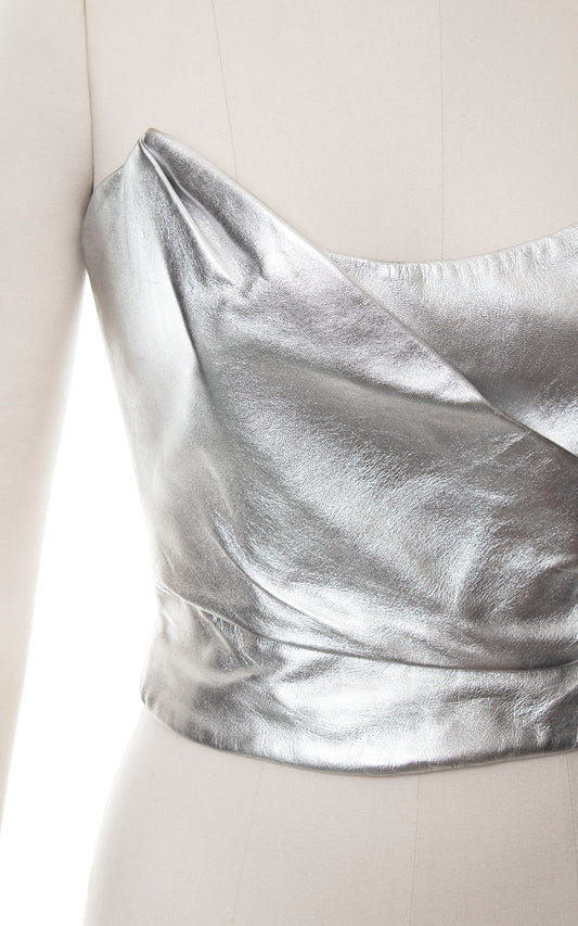 1980s Metallic Silver Leatherette Sculpted Top | small/medium