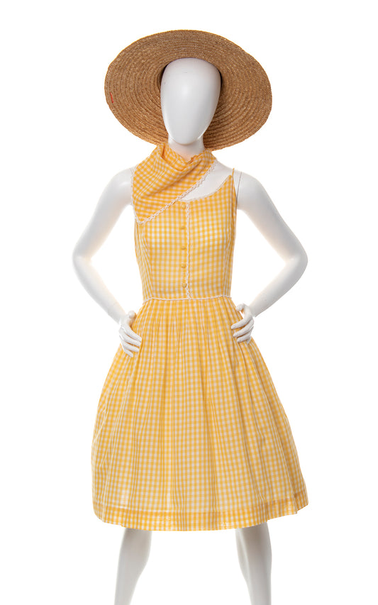 1950s Yellow Gingham Sundress & Head Scarf | medium
