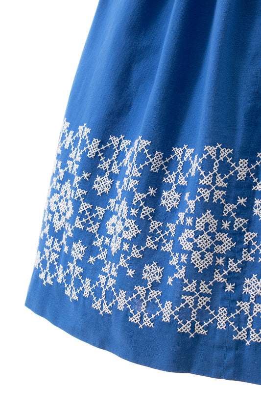 1950s Cross-Stitch Border Cotton Dress | large/x-large
