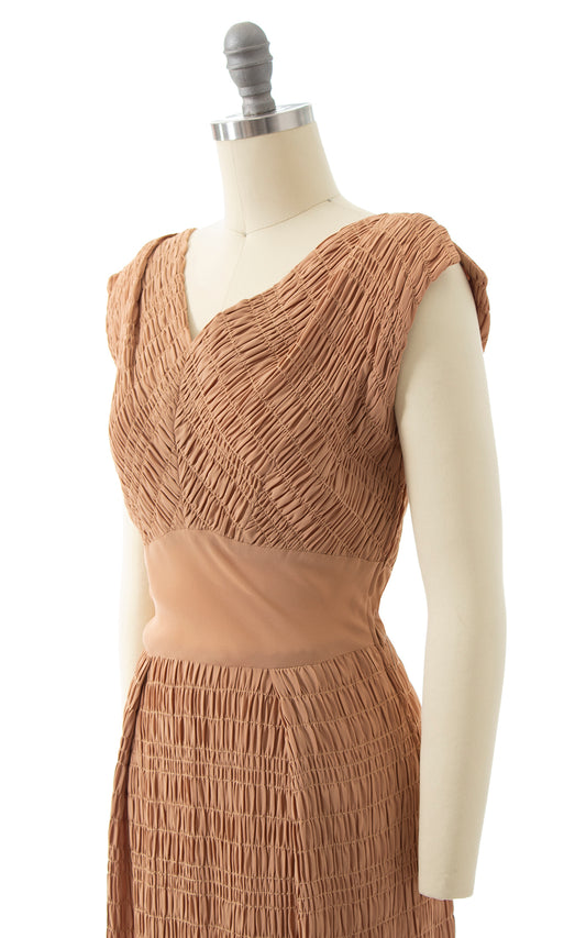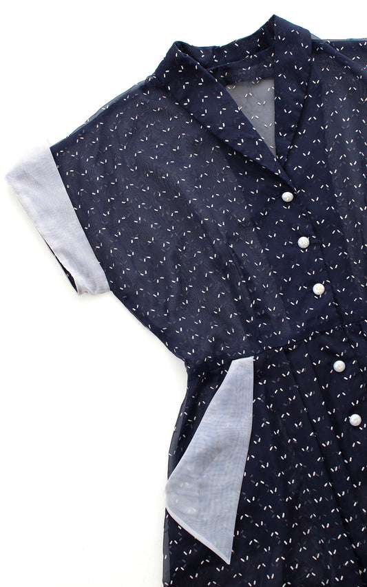 1950s Flocked Nylon Chiffon Shirtwaist Dress with Pockets | medium