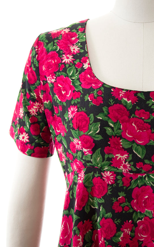 1990s Cabbage Rose Rayon Midi Dress | small/medium