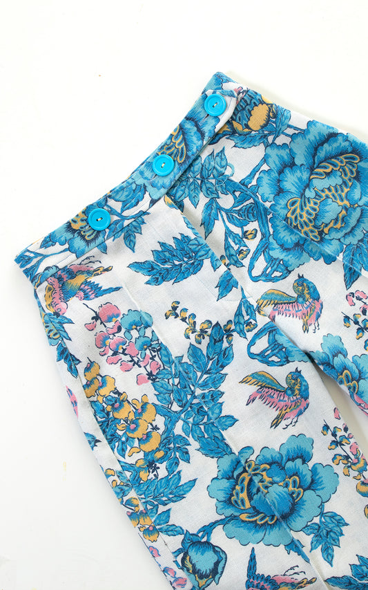 1960s 1970s Bird Floral Print Wide Leg Pants | x-small