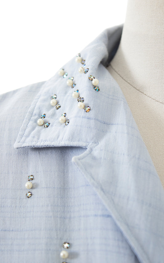 1950s Rhinestone Pearl Beaded Chambray Blouse | large/x-large