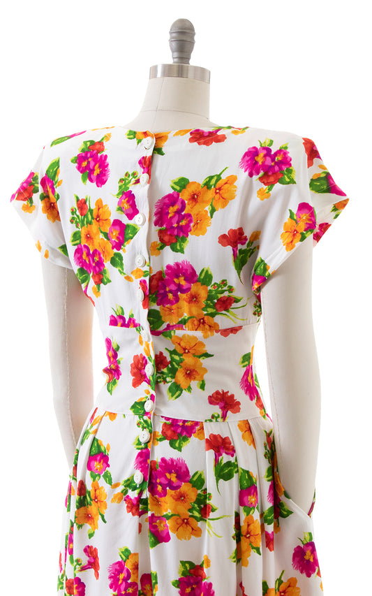 1980s Floral Rayon Button Back Midi Dress | small/medium