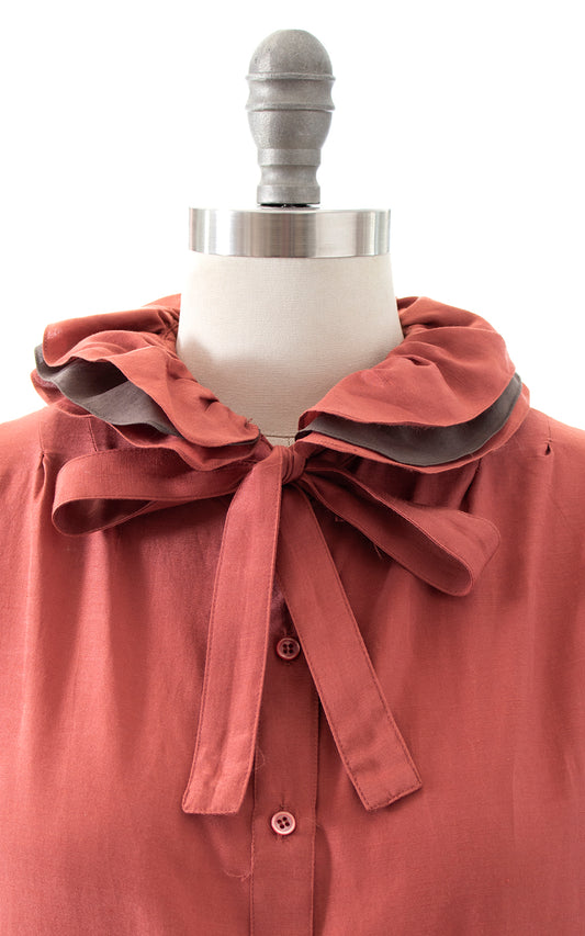 1980s Ruffled Collar Pussy Bow Silk-Cotton Blouse | medium