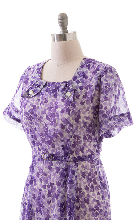 1940s Floral Sheer Cotton Voile Dress | large/x-large