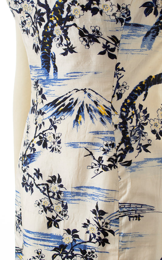 1950s Mt. Fuji Novelty Print Silk Halter Dress | x-small/small