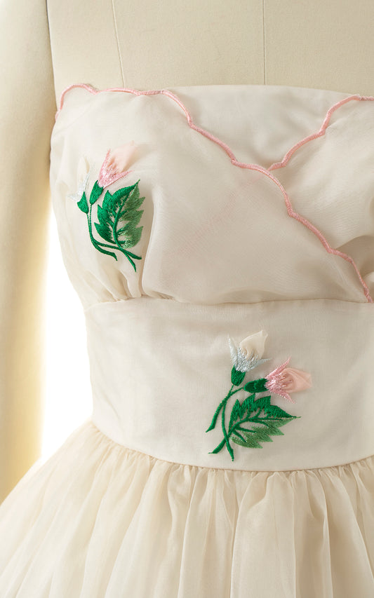 1950s 3D Rose Embroidered Organza Cupcake Dress | x-small/small