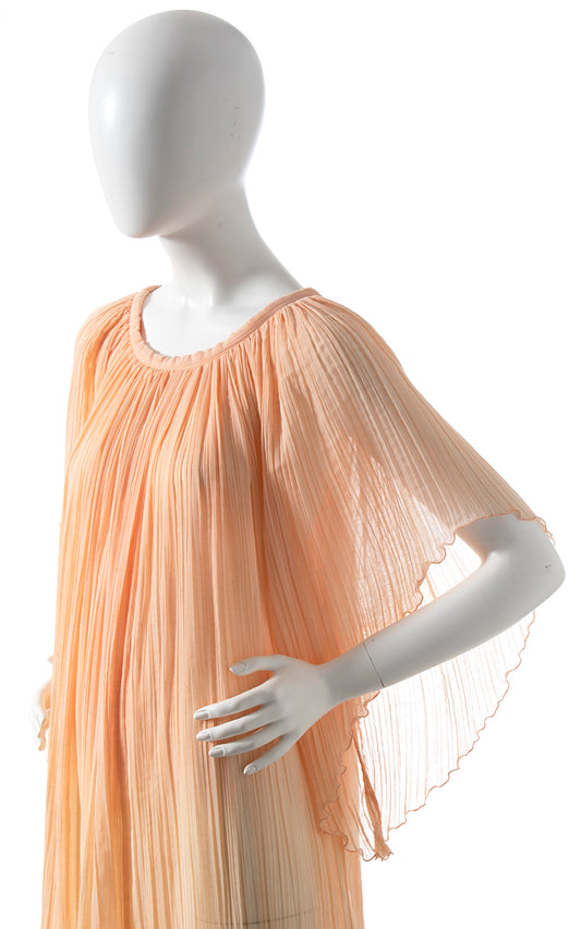 1970s Peach Cotton Gauze Angel Sleeve Maxi Dress | x-small/small/medium/large/x-large