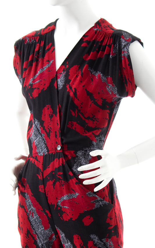 1980s Abstract Rayon Wrap Jumpsuit | medium