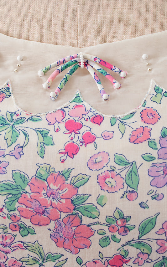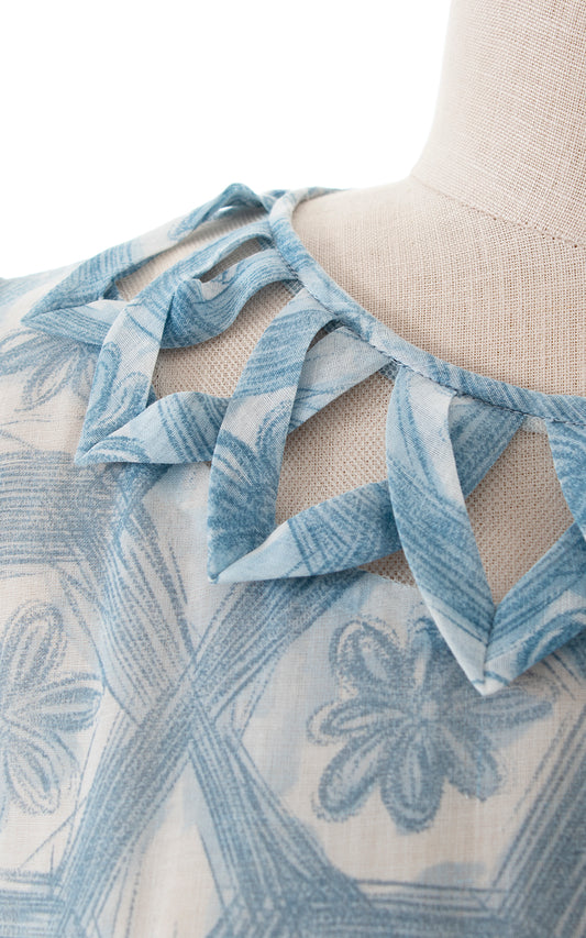 1960s Floral Lattice Neckline Cotton Voile Dress | medium