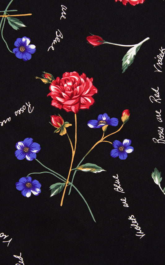 1980s Roses Are Red Rayon Shirtwaist Midi Dress | medium/large