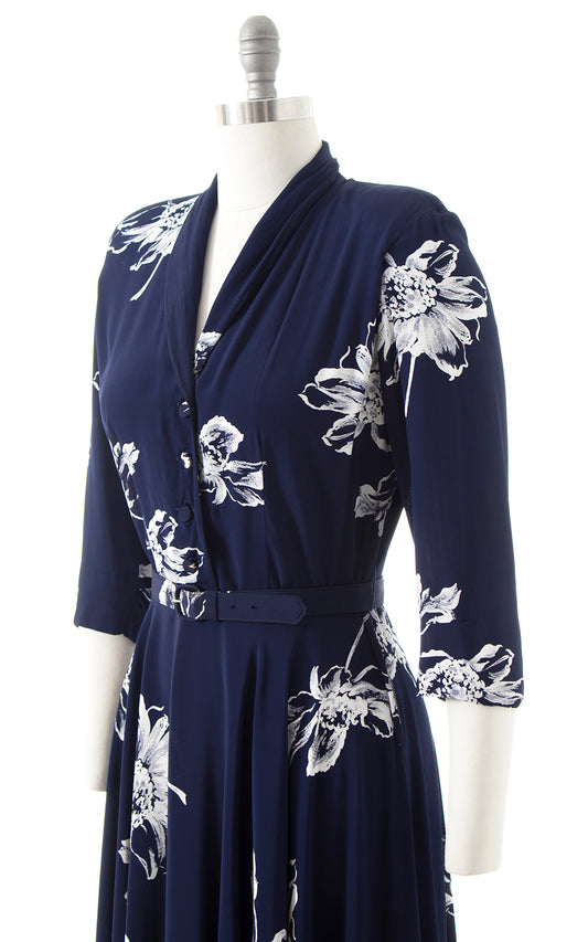 1940s Floral Rayon Crepe Shirtwaist Dress | medium