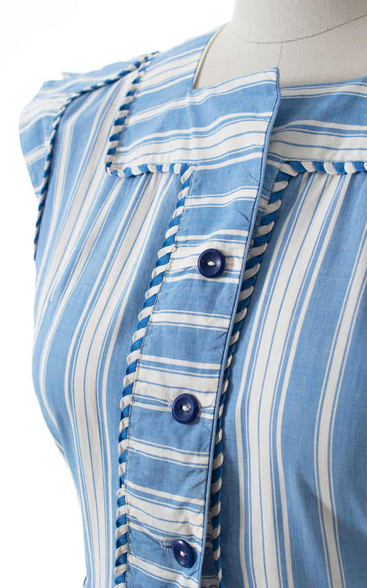 1940s Striped Cotton Shirtwaist Dress with Pockets | small/medium