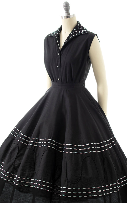 BLV x DEANNA || 1950s Houndstooth Cotton Circle Skirt | small