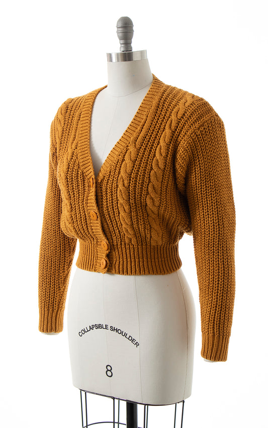 1980s Burnt Pumpkin Knit Cropped Cardigan | small/medium/large