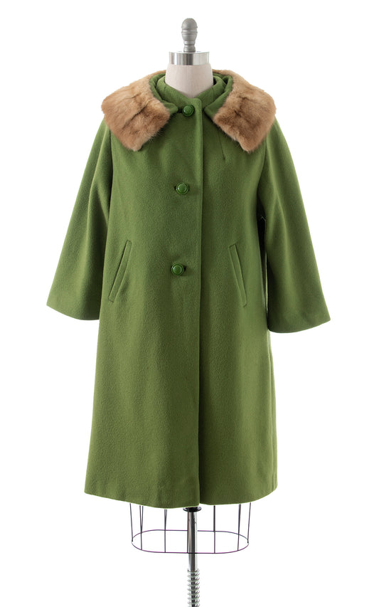 1960s Olive Green Wool & Mink Fur Coat | medium/large