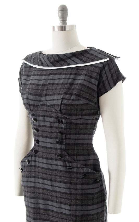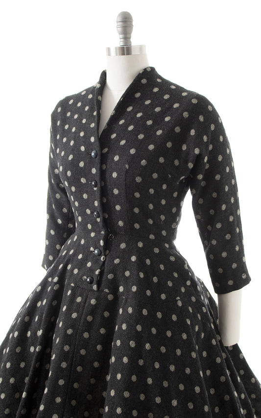 1950s Polka Dot Wool Shirt Dress with Pockets | small/medium
