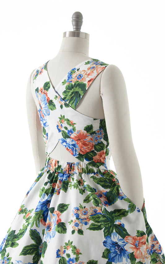 1980s CAROL ANDERSON Floral Criss-Cross Back Dress with Pockets | medium/large