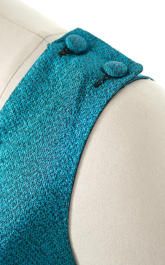 1950s 1960s Blue Lurex Button Back Top | small/medium