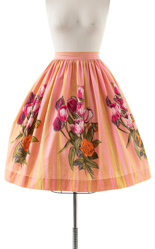 1950s JOHN WOLF Floral Bouquet Border Print Skirt | medium