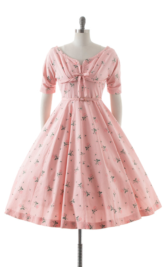 1950s Pink Rose Dress with Pockets | medium