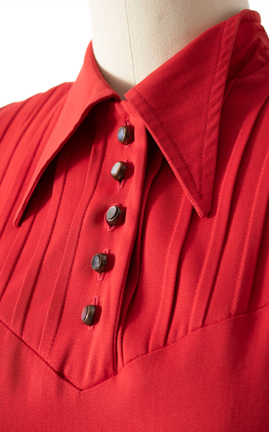 1940s Red Dagger Collar Sheath Dress | small
