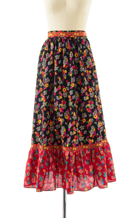 1970s Floral Tiered Maxi Skirt | x-small