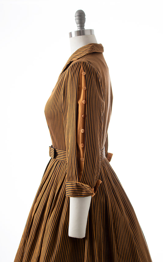 1950s Striped Cotton Button Puff Sleeve Shirtwaist Dress | small/medium