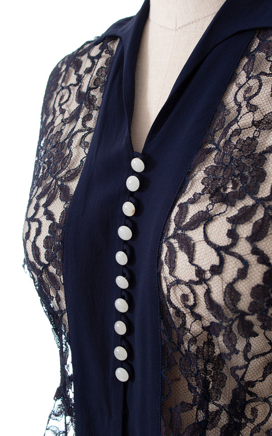 Sold out1940s Navy Blue Lace Blouse | large