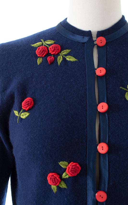 1950s Rose Embroidered Wool Cardigan | small/medium