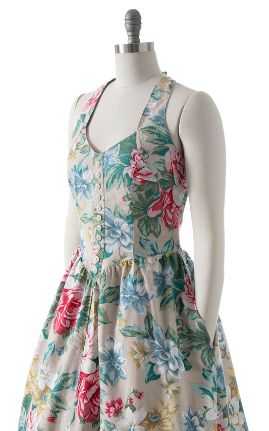 1980s Rose Cotton Halter Sundress with Pocket | medium/large