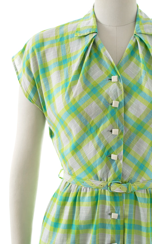 1940s Plaid Cotton Shirtwaist Dress | small