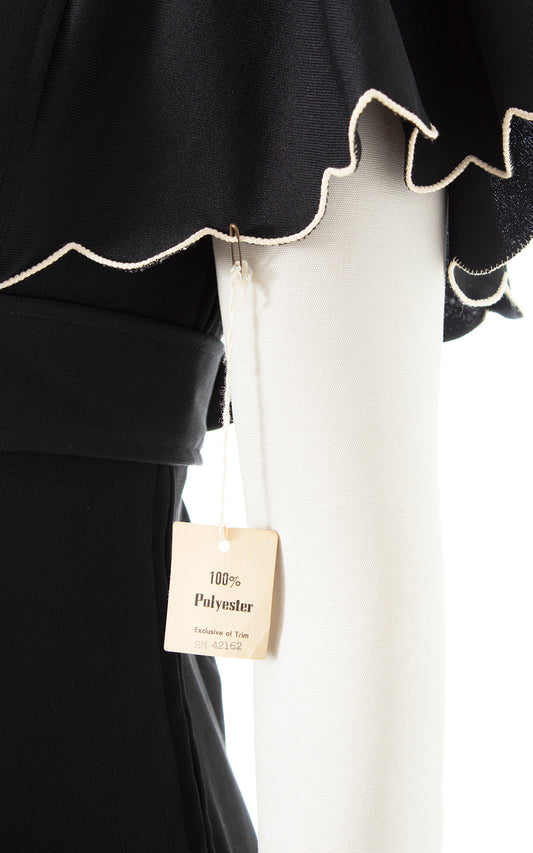 1970s DEADSTOCK Flutter Sleeve Black Maxi Dress | small
