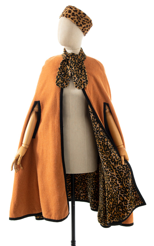 1970s Reversible Leopard Print Faux Fur & Wool Cape | x-small/small/medium/large