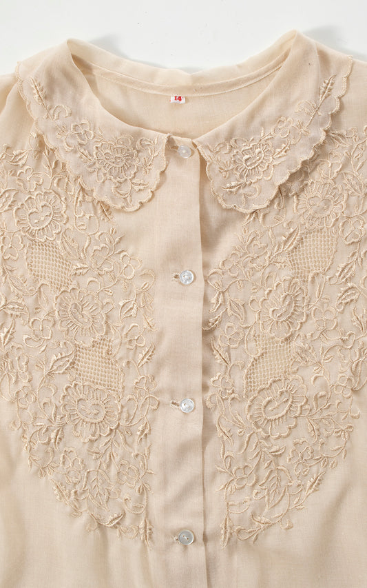 1980s Floral Embroidered Cotton Voile Blouse | large/x-large