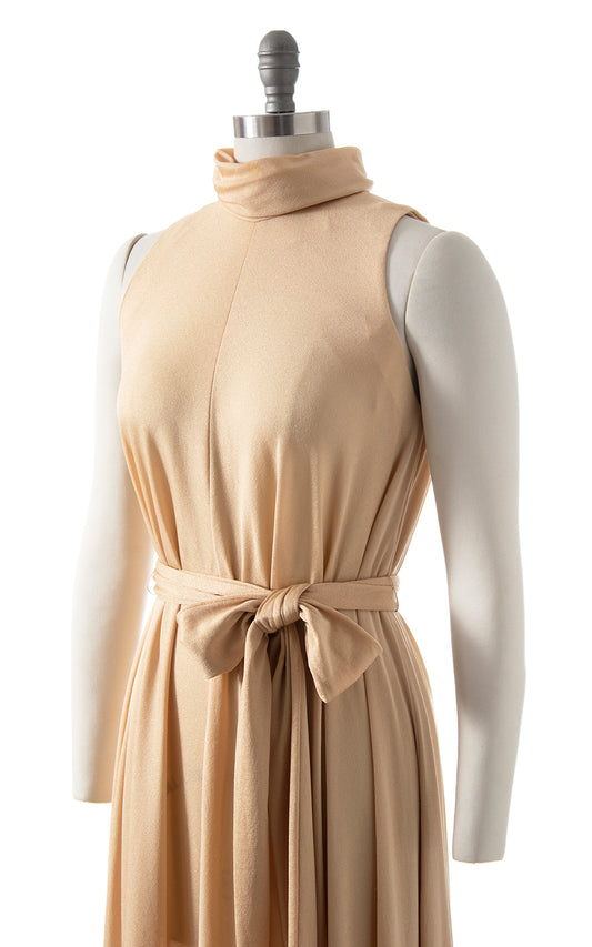 1970s Champagne Jersey Trapeze Maxi Dress | small/medium/large