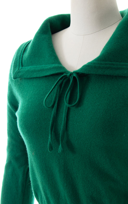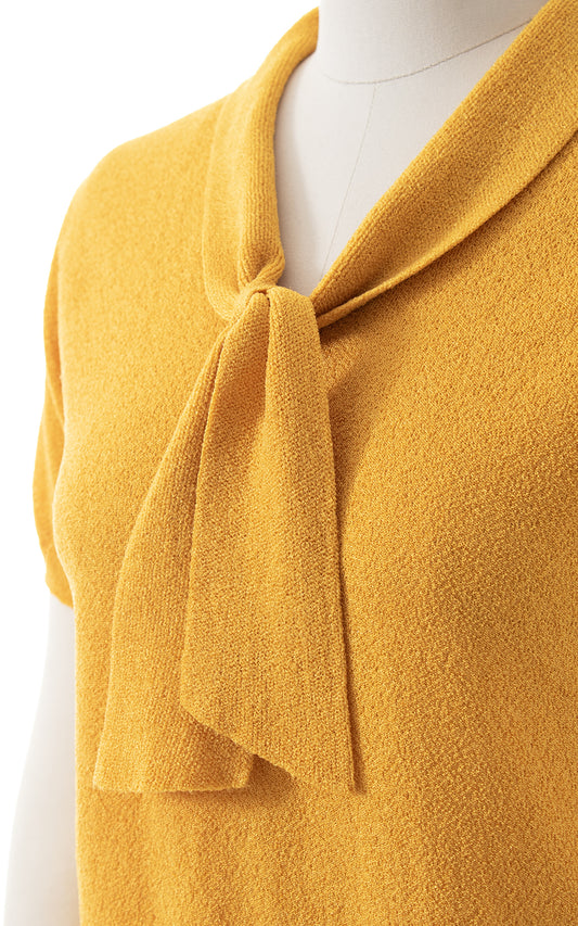 1950s Yellow Tie Neck Sweater Top | small/medium