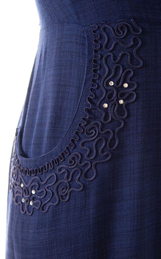 1950s Soutache Rhinestone Linen Shirt Dress | medium/large