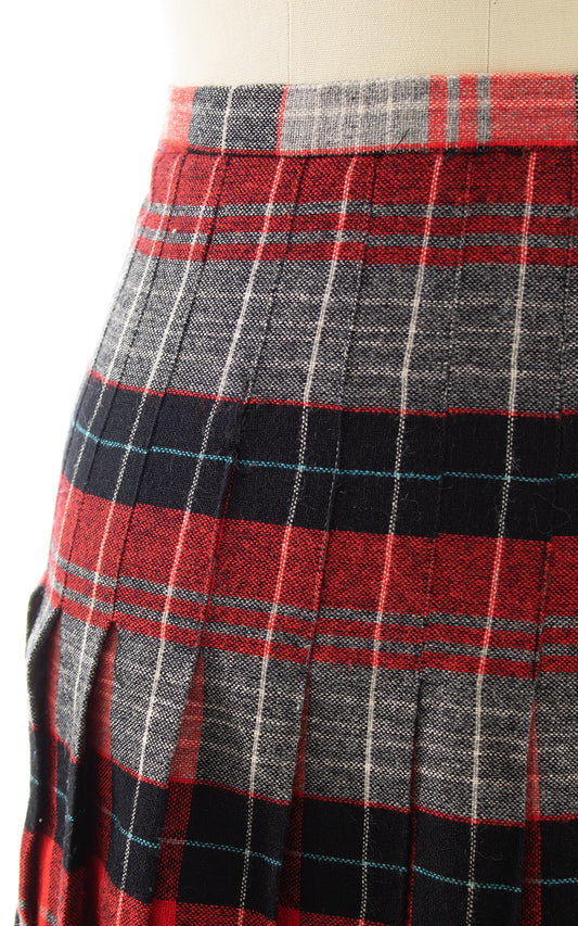 1940s 1950s Pleated Plaid Wool Skirt | small