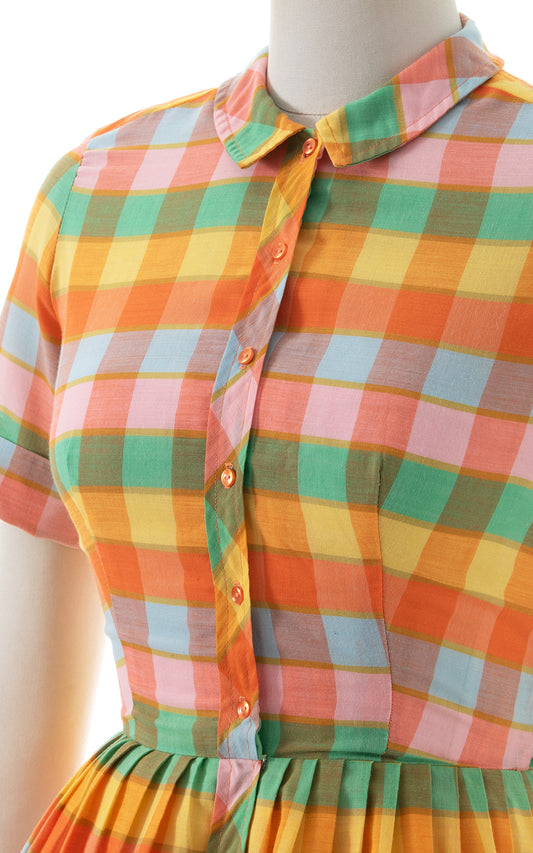 1950s 1960s Rainbow Plaid Shirtwaist Dress | small