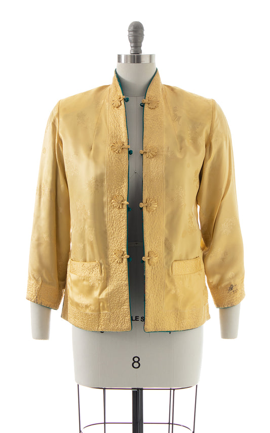 1960s Reversible Asian Floral Satin Jacquard Jacket | small